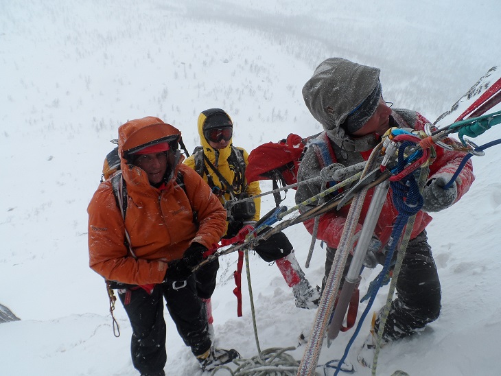 28 марта Непогода. Разрядники Ермачек Юрия провешали три веревки 4-го кф. по маршруту 3-Б на пик М.Вудьявр. У остальных отделения скальные и ледовые занятия.
