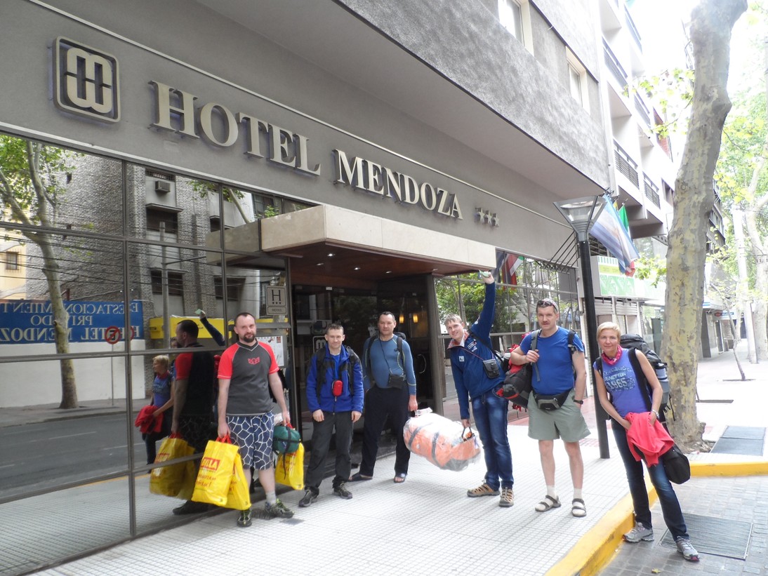 В понедельник, в 7 утра, собрались все вместе,на завтраке, на 10 этаже нашей гостиницы! Познакомились и обсудили наши дальнейшие планы! Приходится сдвигать наш график отьезда из Мендосы под маршрут. Команда большая, всем надо успеть оформить пермит, купить газ и продукты.