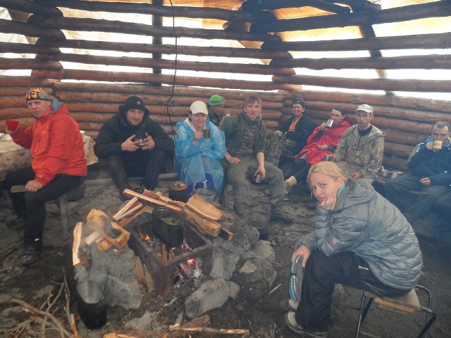 Нам и здесь приготовили баню, после 2-х дней переходов, это было актуально. Для приготовления пищи нам выделили большой АИЛ и выдали котлы. На бочки не пошли, там уже расположились пограничники. К вечеру они сами пришли и проверили у всех документы.Ночью выпал снег, но мы все были сухими, палаток не ставили, спали кто на чердаке, кто в бане.