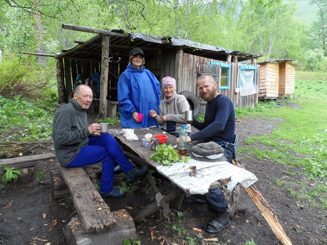 Но лед и снег позади, внизу нас ждет зеленая поляна и тепло. Нам снова затопили баню и расположили на чердаках.Светит солнце и мы успеваем просушиться.