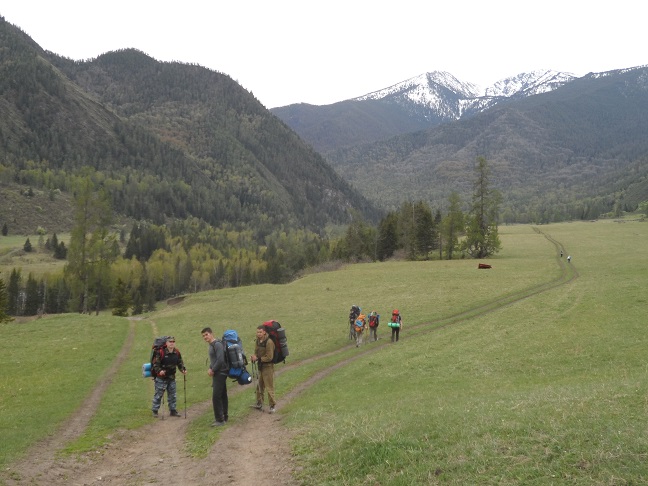 С поезда в Барнауле нас встречали четыре Газели, в каждую разместились с рюкзаками по 8 учвстников. Дожди шли в Новосибирске и в Барнауле, но за Горно-Алтайском уже была хорошая погода. Часть продуктов на всю команду мы купили в Супермаркете Новосибирска, остальное в магазине Бийска и в Усть-Коксе. Заехали в погранотряд и получили погранпропуска.