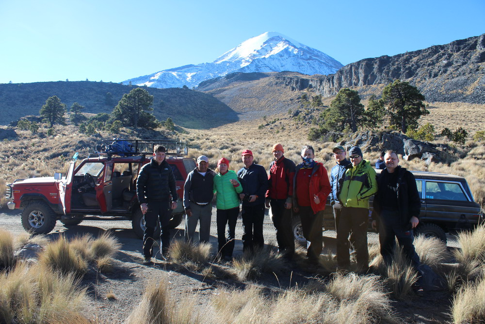 Вечером до наступления темноты совершили прогулку по тропе, ведущей на вершину вулкана. Набрали в подарок родным огромные сосновые шишки. Аромат от хвойного леса действует как фитотерапия. Когда стемнело, очень хорошо стало видно маленькие города Тласкала и Апизоко. Вечером здесь уже прохладно, чувствуется высота. Погода стоит прекрасная. Утром, позавтракав, отправились на восхождение. В нижней части тропа проходит по хвойному лесу, но постепенно становится все круче и круче. На высоте 3800м лес кончается и начинается высокогорная тундра. Подъем на вершину занимает от 4 до 6 часов в зависимости от подготовки. Вулкан Ла-Малинче является потухшим стратовулканом, на его вершине нет характерного кратера, а лишь скальный гребень. Это все что осталось от вулканической деятельности. По мере подъема начинает чувствоваться высота. На вершине высотой 4450м стоит маленький крест и есть хорошая площадка, на которой все могут разместиться и по фотографироваться.