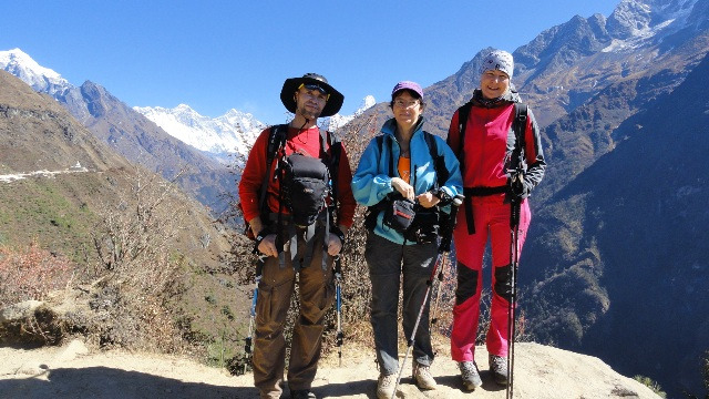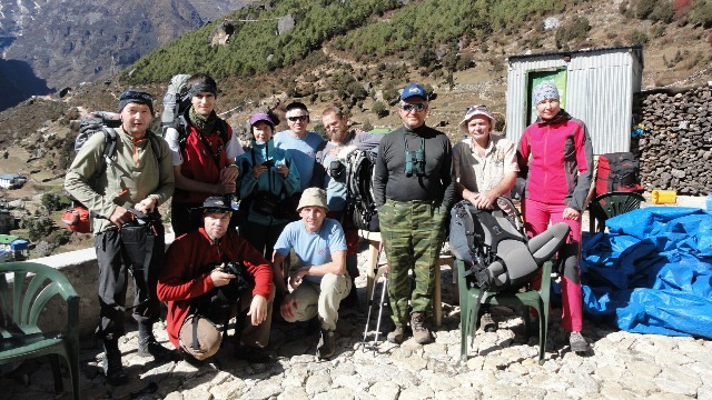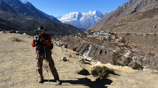 Через некоторое время нам открылся вид на Ама-Даблам, Лходзе и Эверест. С их появлением наша со Славой скорость резко упала. Эти красавцы открывались перед нами в новых и новых красках и сюжетах. И мы снимали и снимали. Мы похожи на биатлонистов. Также, отстав от основной группы, мы чесали, махая палками, насколько хватало сердца, чтобы сократить отставание. Добежав до очередной мишени, доставали фотики, настраивали, щелкали и бежали дальше, на ходу пакуя аппаратуру.