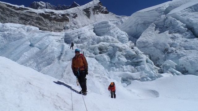 Первыми на гору уходит наша сибирская команда Круглов Дмитрий (Новосибирск) и Акуленко Валера (Междуреченск), их ведет наш непальский гид.